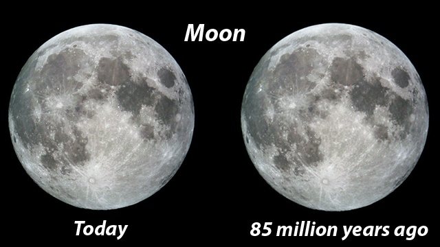 वर्तमान में चंद्रमा पृथ्वी से प्रति वर्ष लगभग 1.5 इंच दूर जा रहा है. यदि हम 1.5 इंच को 8.5 करोड़ वर्ष से गुणा करें तो हमें उत्तर मिलता है लगभग 2,012 मील (3,238 किलोमीटर).